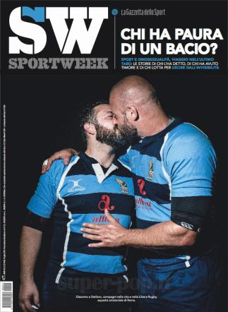 Sono sicura che già l’avrete vista in diversi giornali e siti… ma volevo che la vedeste anche da me. E’ la copertina di Sportweek, che pubblica il bacio tra due rugbisti, Giacomo e Stefano, che giocano nella Libera Rugby, compagni sia in campo che nella vita.