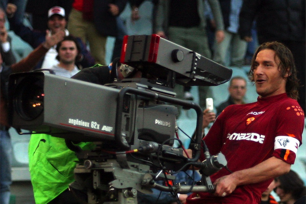 Chissà se Francesco Totti avrà preso ispirazione da loro… fatto sta che non è nuovo a esultanze stravaganti. Famosa è quella, sempre dopo un gol nel derby, in cui prese il posto di un operatore dietro la telecamera.